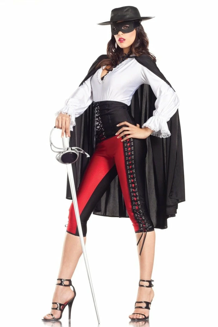 6 Piece Sexy Bandit includes Hat mask top pants waist band cape. (Sword not included sold separately).