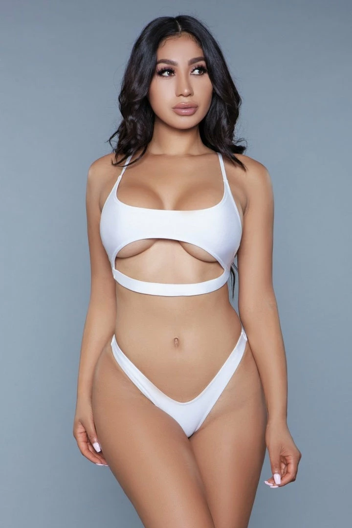 2 Piece. Sporty style Cami crop top and a cheeky thong bottom swimsuit.