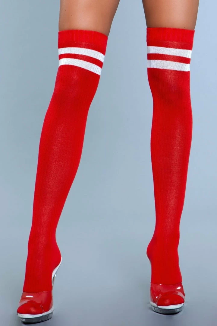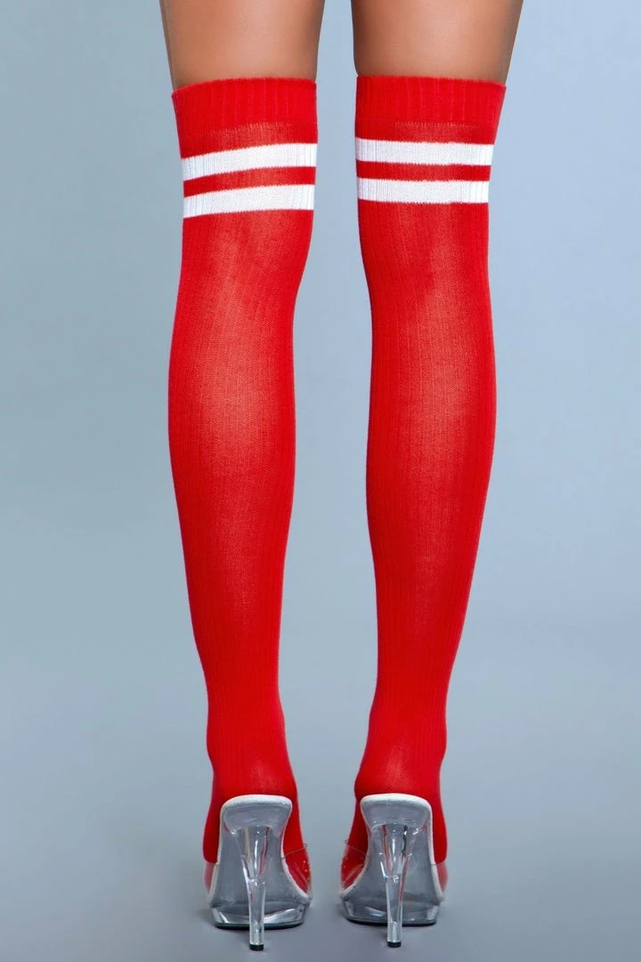 Be Wicked Hosiery Going Pro Thigh Highs Red