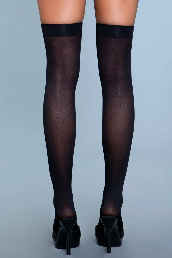 Be Wicked Hosiery Opaque Nylon Thigh Highs Black