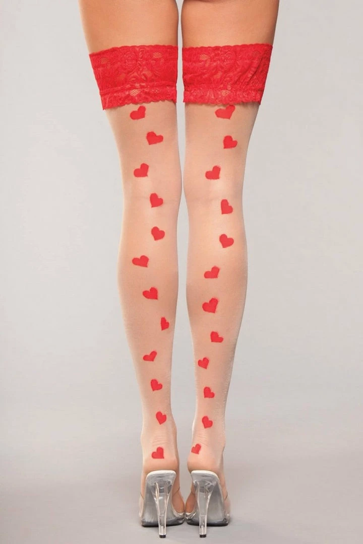 Lace Top Heart Hold Ups.