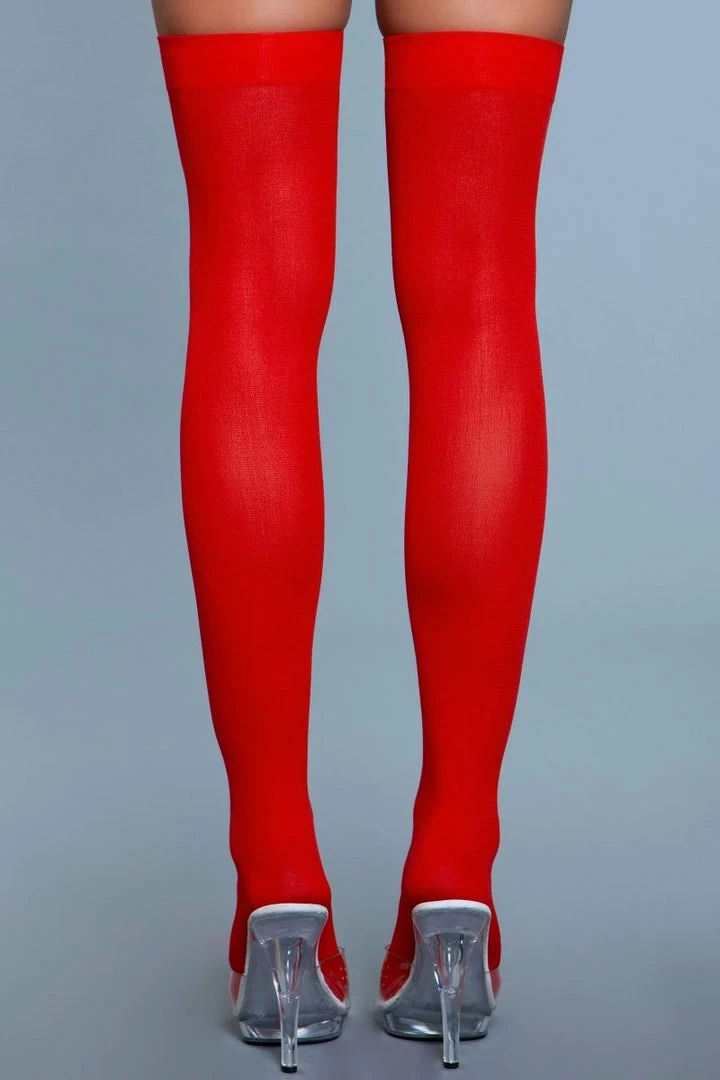 Be Wicked Opaque Nylon Thigh Highs Red