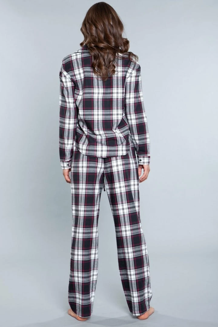 2 Piece. Long sleeve flannel set with button-down top and drawstring waistband pants. Turn inside out/ Wash separately machine wash cold/ Tumble dry low cool iron/do not dry clean. 100% cotton.