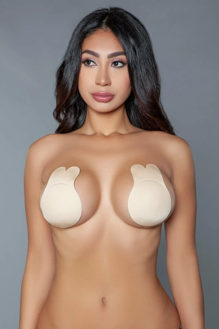 2 pc self-adhesive rabbit ear lift up. Features: Mini and lightweight design that prevents exposure with stereoscopic concave in the middle lifts up and upgrades breast size.