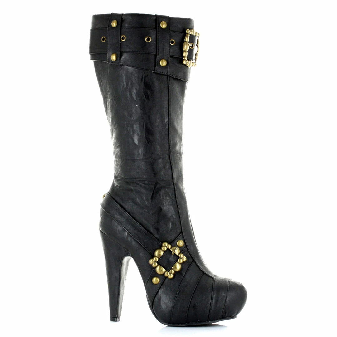 4 inch Heel Knee High Steampunk Boots With Buckles And Studs, concealed platform and inner zipper