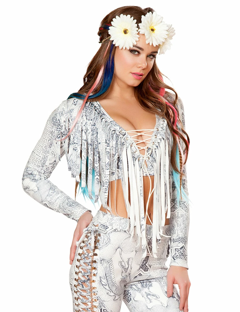 Celtic Dragon Print Faux Suede Long Sleeve Top (pants and crown sold separately)