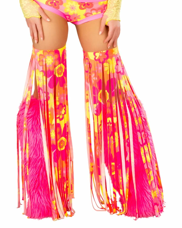JValentine Rave Leg Warmers & Wraps Print Neon Flower Fringe Leggings