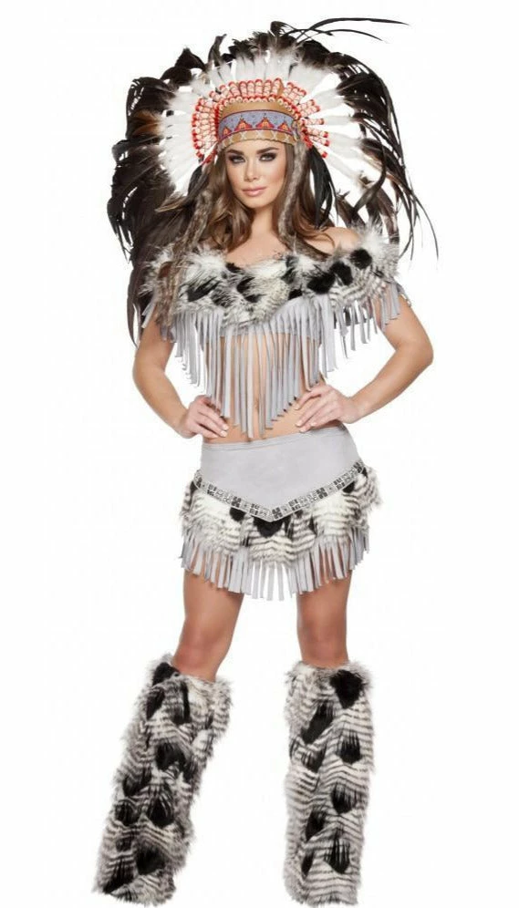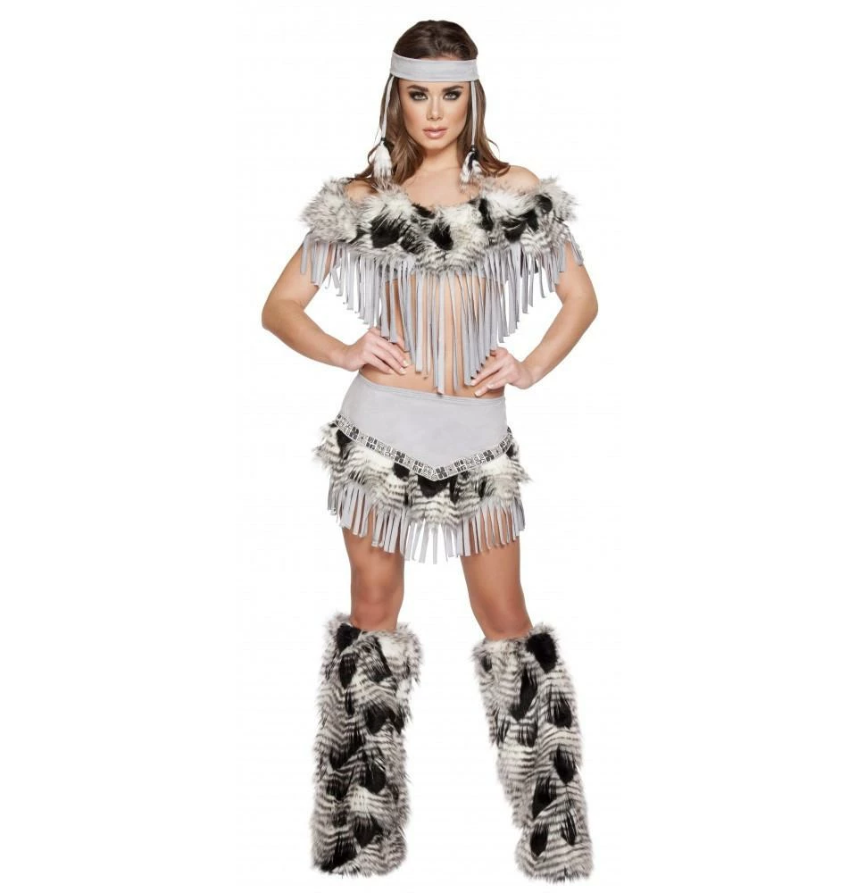 Includes Headband, Crop Top with Fringe and Fur, and Skirt with Fringe and Fur