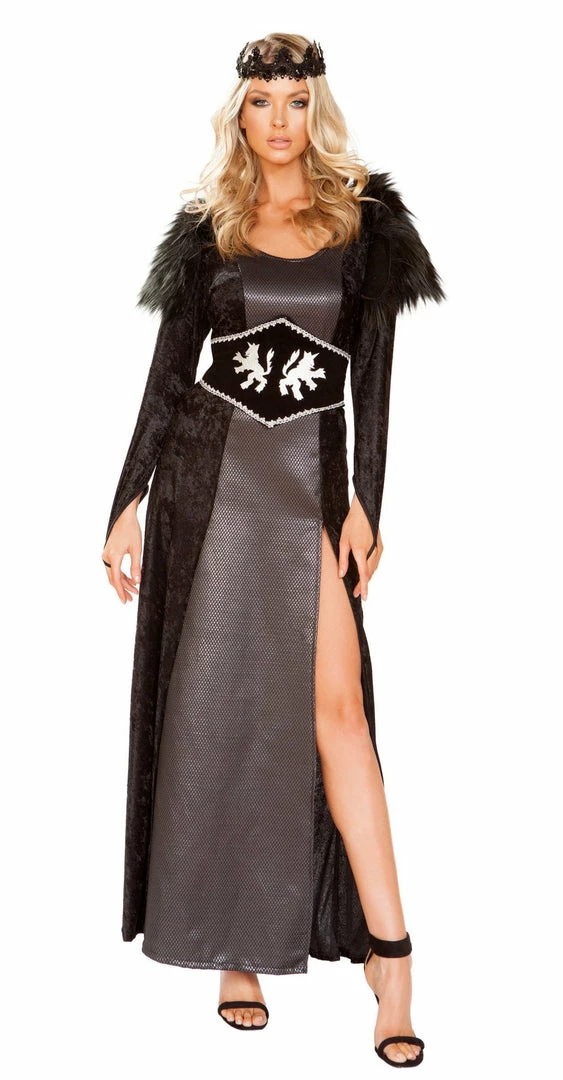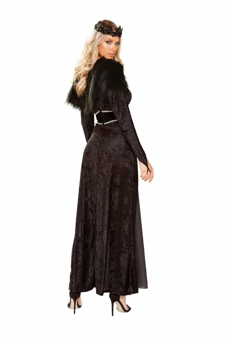 Includes Two Tone Long Sleeved Slit Dress with Faux Fur Detail and Waist Cincher with Trim Accent