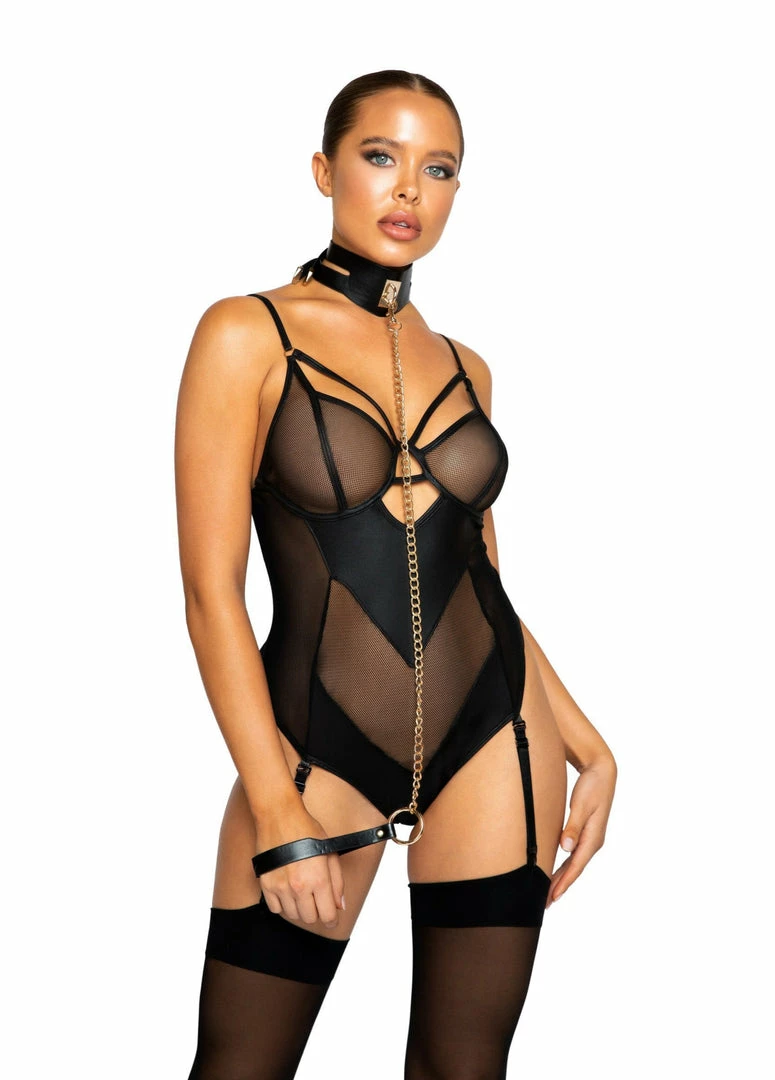 Roma Costume Netted Matte Bodysuit With Garter Set