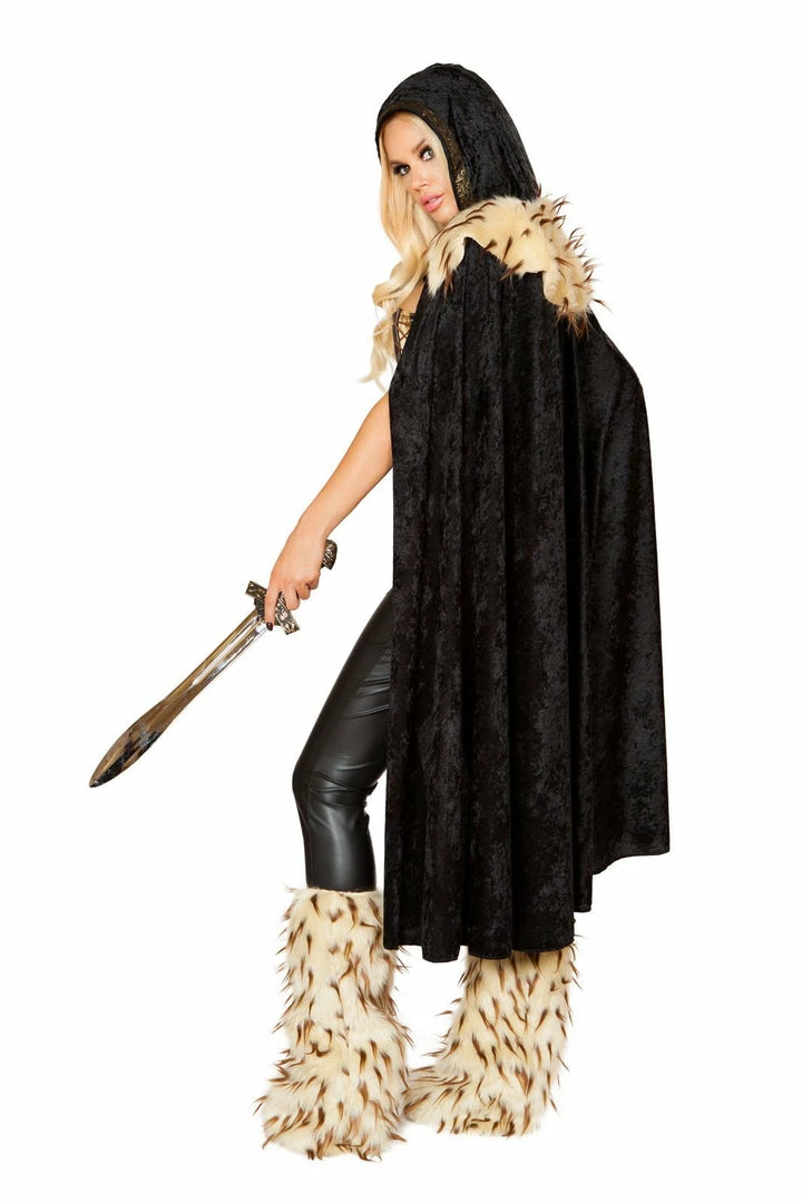 Hooded Cape with Faux Fur Detail.